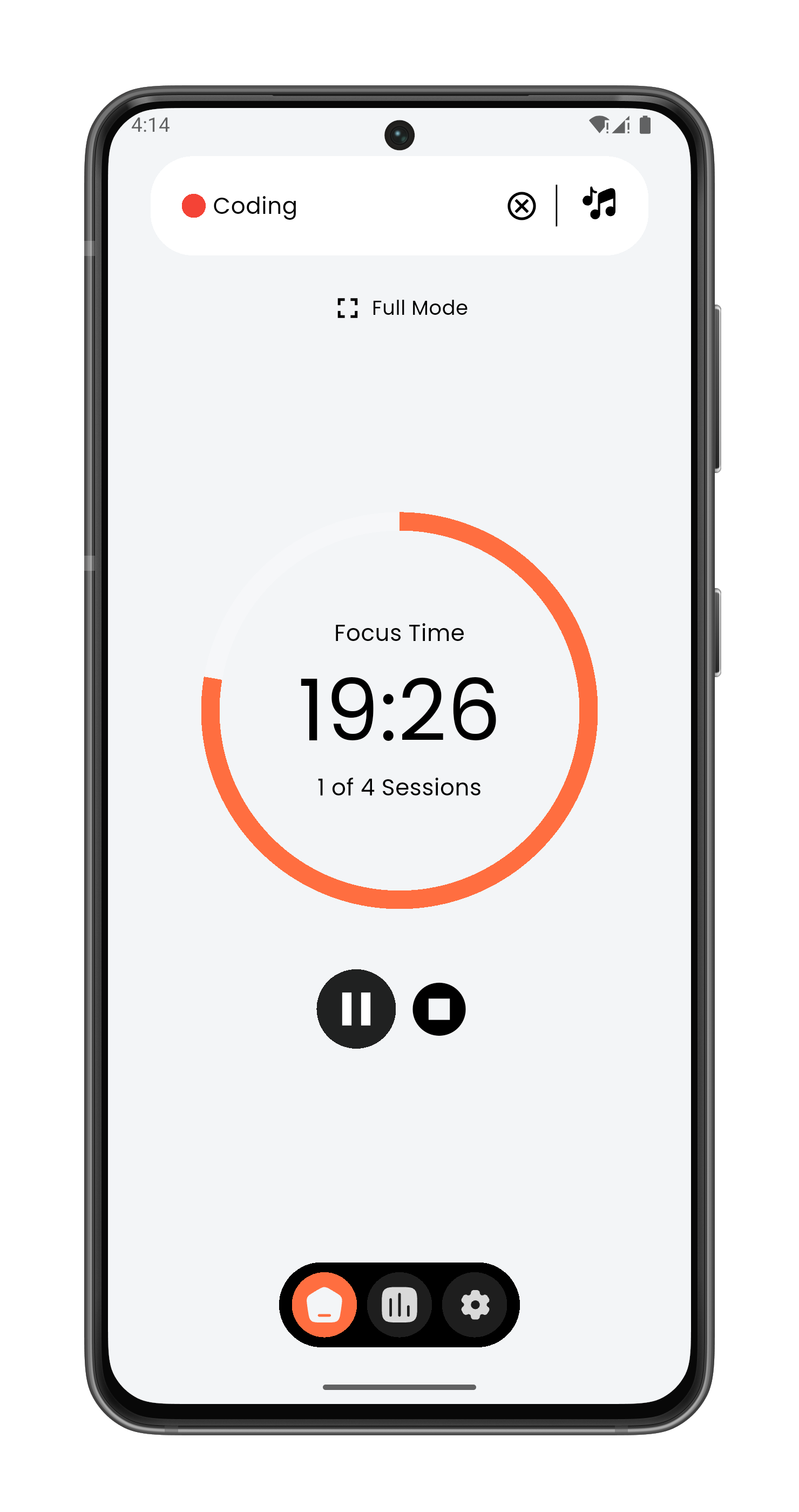 Pick a classic Pomodoro session or make your own. Short or long, your focus, your rules. The timer keeps going even if you switch apps or close it — so nothing interrupts your flow.